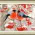 Вышитая картина “Снегири на ветке рябины”