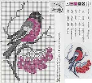 Схемы для вышивки снегирей крестом