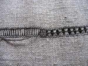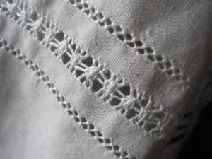 Шов «козлик», который иногда применяется в качестве самостоятельного. В этом случае продергивать необходимо только одну или две нитки. Еще такой шов можно применять между разными мережками, и тогда продергивают большее количество ниток. У данного шва внешний вид рисунка напрямую зависит от количества ниток, что хорошо видно на фото.