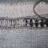 Продолжаем наши уроки, и рассмотрим следующую разновидность узора «столбик», которая называется «Жучок». Для его выполнения возьмите три столбика, и свяжите их. После этого необходимо обвить третий столбик, сделать один шов на ткани, в нижней части мережки, как на фото. Затем обовьем четвертый столбик, и свяжем еще один пучок из нескольких столбиков. После этого нить перемещается на верхнюю часть узора мережка.