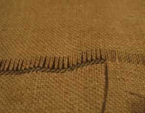 По внутреннему периметру квадрата выполняем подрезы ножницами. Затем начинаем удалять нити в этих местах. Эту операцию нужно делать медленно и постепенно, пока не удалите все нитки в одинаковом направлении. Затем направление меняется, и в результате выходит решето, или пустые окошки. После этого эти окна должны оплетаться нитями. Вначале закрепим нить, и выходим иглой с левой стороны. Выполняем тугую обвивку всех ниток одного столбика, а затем переведем нитку дальше, и выполним обвивку следующей пряди.