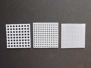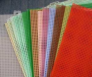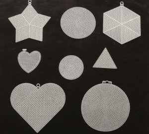 У готовых шаблонов есть ряд преимуществ. Во-первых они очень удобны для вышивания своими руками. Во-вторых у них гладкие стороны с внешней стороны. А самое главное, что они имеют различную окраску. Самые распространенные из них имеют цвет красного, зеленого, синего и белого пластика. Ходовым является и прозрачный пластик. Жесткость таких заготовок варьируется от более мягких до более жестких. Размер отверстий также имеет градацию от пяти, семи, десяти крестиков до одного сантиметра длины.