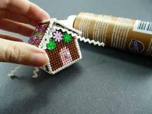 Если домик предназначен для того, чтобы его вешать, тогда можете сделать своими руками небольшую петлицу на его крыше. На этом мастер-класс по вышивке на пластиковой фурнитуре закончен, теперь вы можете попытаться изготовить и другие поделки из этого материала.