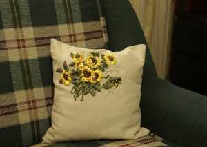 С помощью вышивки лентами можно создавать удивительной красоты вещи. Этот увлекательный творческий процесс не оставит никого равнодушным. Даже начинающие вышивальщицы смогут овладеть таким рукоделием за короткий период времени. Особенно популярным считается вышивка лентами на предметах домашнего интерьера. Например, в этой статье вам будет показан мастер-класс вышивки декоративных диванных подушек цветами подсолнуха. Так давайте же незамедлительно приступим к работе.