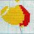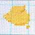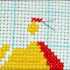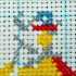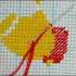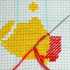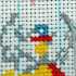 Заканчиваем вышивку полукрестиков во втором ряду и начинаем пониматься на следующий. Оставляем пустыми места для пары крестиков слева и прошиваем полукрестики вправо, но не полностью (по окончанию не прошивается стежочек). Опускаемся на три клетки книзу для создания хвостика мяча.