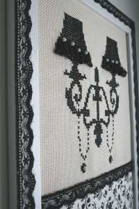 Контурная вышивка, делается счетным крестом. Если смотреть на такую картину, можно подумать, что монохромная живопись, нарисована карандашом. Тонкими стежками, вышивают только наружные контуры образа. Важные элементы, выделяют маленькими линиями. Незаконченный силуэт монохром, позволяют наблюдателя додумывать и фантазировать, оставшиеся незавершенные детали, в такой вышивке, как контурная.