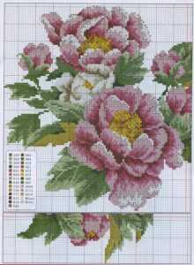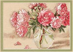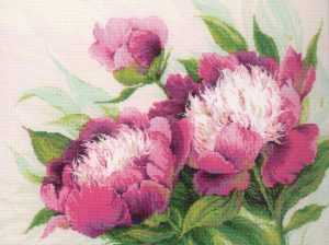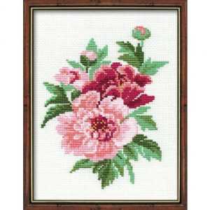 Начинать знакомиться с вышивкой в технике креста не обязательно со скучных и однообразных схем. Это могут быть цветы или небольшие их букеты. Новичкам наверняка понравится вышивать пышные осенние пионы. Для первой работы замечательно подойдет одинокий цветок в вазе или три бутона лежащих на столе.