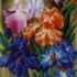 Следующая схема для вышивки называется «Акварельные ирисы». В этом случае уже предусматривается частичная зашивка бисером. Суть данного метода, заключается в вышивке отдельных областей по общему напечатанному фону. Сам мотив печатается на натуральном холсте. Благодаря такому материалу, вся роскошь ирисов передается на художественной основе. Сюжет переносится на ткань экосольвентными красками, что помогает защитить готовое изображение во время стирки. Подобная краска не меркнет с годами и не растрескивается под солнечным лучом. Ткань имеет довольно прочную текстуру, за счет чего расшитое полотно не деформируется под тяжестью бисера.