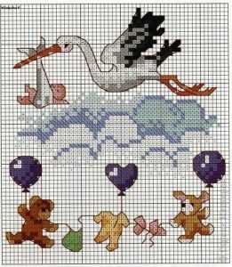 Ну какая же семья без малыша, да еще и не одного, а нескольких. Каждая женщина мечтает о материнстве. Тем более, что семья не может считаться полной, если в ней нет малышей. Вот и вышивают мастерицы различные изображения, согласно примет. Самым действенным способом, чтобы осуществить свою мечту является вышивание ангелочков в технике креста. Также этому желанию способствуют схемы, изображающие мам держащих детей на руках, летящий аист, несущий в клюве младенца, и все, что с этим связано. Мадонна с ребенком по приметам является еще и домашним оберегом. Также способствуют пополнению в семье и конечно же иконы. Вот именно лики святых способствуют женскому счастью и исполнению желаний.
