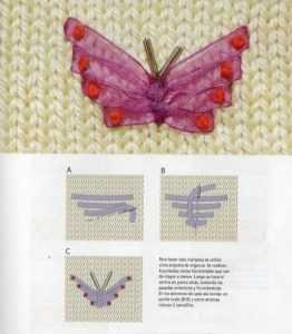 Схему в обязательном порядке сперва переносят на кальку. А потом, если трикотаж рыхлый, переносят рисунок на материю с помощью ручных стежков по контурам. Если материал не рыхлый, а наоборот достаточной плотный, то изображение можно вышить и с помощью машинки. После всего калька убирается.