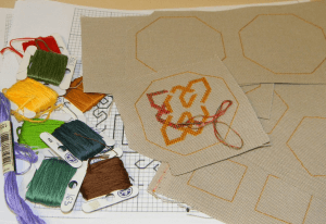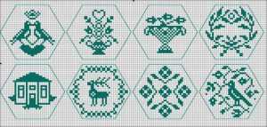 Приступайте к выбору узора. Понадобится достаточное количество орнаментов, чтобы вышить различные элементы шара. А именно: шесть восьмигранников, восемь шестиугольников и двенадцать квадратиков.