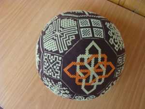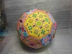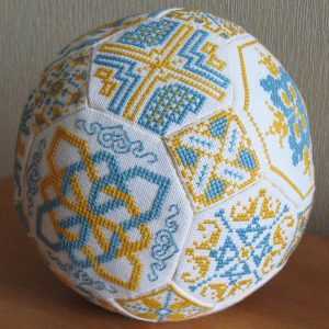 Вы можете изобразить на отдельных частях шара сразу несколько мотивов: два, четыре или даже восемь. По традиции, техника квакер представляет собой орнаменты с геометрическими и растительными узорами, которые выполняются вышивкой в спокойных и строгих тонах. Если изделие предназначено для ребенка, тогда можно изобразить на нем различные цифры, буквы или знаки. Цветы и животных также выполняют при желании.