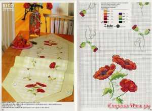Во время подборки узоров крестиком, вы должны рассчитывать так, чтобы орнамент размещался на скатерти хотя бы несколько раз, и его не нужно будет обрезать.