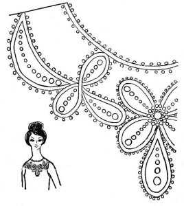 Тамбурным швом оформите губы, ресницы и ее сережки. Будьте предельно внимательны, так как точки на сережках следует вышивать французским узелком. После этого прорисуйте волосы, как изображено на картинке, а потом также вышейте их своими руками. Конечно с машинкой вы сделаете это намного быстрей, так как линии будут получаться предельно ровно.