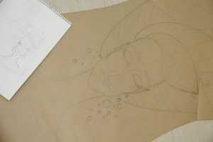 Первым делом необходимо изготовить на простой бумаге правильный эскиз того рисунка, который вы хотите вышить своими руками. В этом мастер-классе будет использовано изображение красивой девушки.