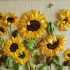 Таким образом вам нужно сформировать лепесточки первого подсолнуха. Не стоит их делать идентично одинаковыми по отношению друг к другу. Главная задача заключается в том, чтобы сделать цветы максимально естественными. Точно таким же выше описанным образом, вышейте остальные солнышки, то есть подсолнухи. Если вы научитесь выполнять самые простые стежки, то в дальнейшем вы сможете делать самостоятельно целые композиции.