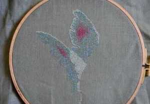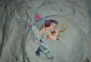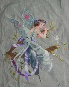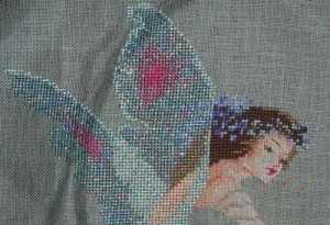 Прежде всего, возьмите материал, размером пятьдесят на семьдесят сантиметров. Чтобы избежать осыпания краев, перед вышивкой ткань обметывается, после чего ее уже можно вставлять в пяльцы. На первом этапе, вышивка фея начинается с вышивки крыльев. Чтобы придать этой делать еще большей легкости и воздушности, они вышиваются при помощи хлопковых нитей с добавлением металлизированных. Такое интересное сочетание добавит легкого сияния и прозрачности крылышкам сказочного существа.