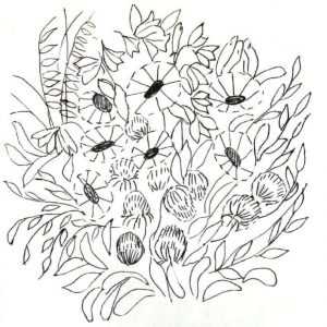 Чтобы создать вышитую картину полноценной и законченной, вам необходимо вышить нитками нескольких оттенков зеленого цвета различную зелень. Для этого лучше взять в работу нити средней толщины и самые толстые для вязания. Посмотрите на фото, это пример того, как вы можете своими руками оформить панно или картину. Сделать это совсем не сложно. Необходимо постепенно, начиная снизу, вышивать зелень разной формы и толщины так, как вам это угодно. Даже схема для этого абсолютно не нужна. Доверьтесь своей интуиции, и начинайте творить.