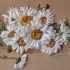 После того, как лепестки полевого цветка практически готовы, переходим к формированию серединки. Возьмите нитки желтого цвета и сделайте обвитие левой руки вокруг кончика иглы, в колов ее прямо в нужное место. Подтягивайте нитку таким образом, чтобы она полностью захватила инструмент. Протягивайте его на изнанку, а на лицевой части изделия у вас получится французский узелок. Повторите аналогичные действия еще несколько раз, пока сердцевина ромашки не заполнится полностью, как показано на фото.