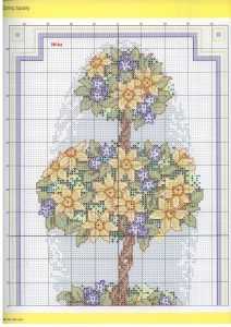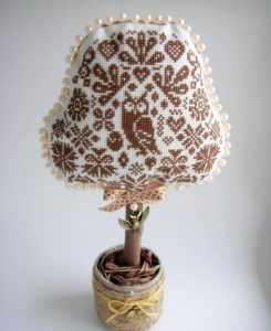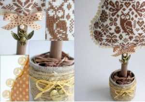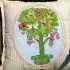 После того, как закончите вышивку крестом, вам нужно приложить ее лицевой стороной к небольшому хлопковому отрезку, а потом сшить изделие так, чтоб оно было похоже на мини подушечку. Эта подушечка должна напоминать своими очертаниями на лиственное дерево. После этого можете вывернуть поделку, и наполнить ее синтепоном. Края изделия нужно украсить любым декоративным материалом, который у вас есть в наличии. Декор должен быть полностью на ваше усмотрение.