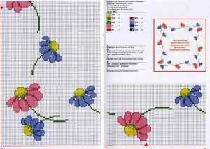 Проделайте такие манипуляции со всеми полевыми цветами, которые есть на схеме. Периодически сверяясь с ней, чтобы избежать переделывания работы. Не забывайте следить за тем, чтобы две стороны канвы смотрелись аккуратно и имели опрятный вид.