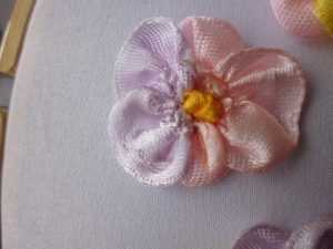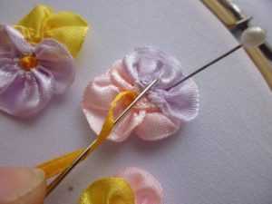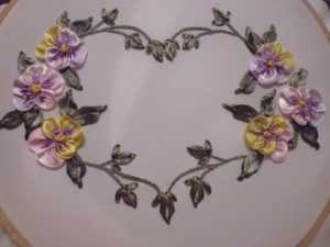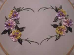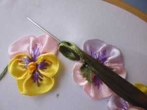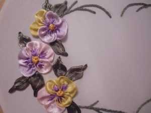 Фото МК по вышивки ленточками анютиных глазок