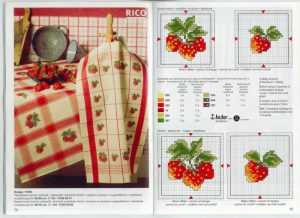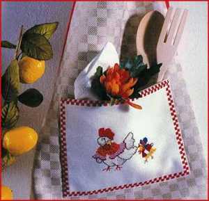 - для своих первых изделий вам лучше брать не полотенца и скатерти, а простую канву, так как на нее вам будет легче переносить рисунок выбранной вами схемы с кухонным мотивом;
