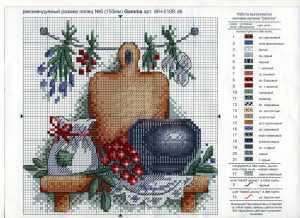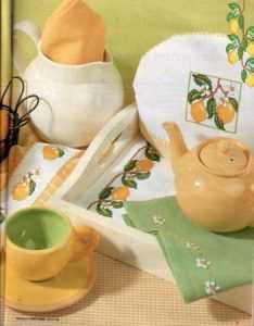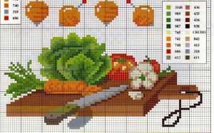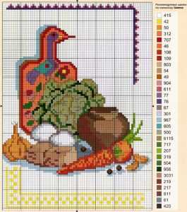 На чем можно вышить подходящие мотивы, решать вам. Это могут быть прихватки, салфетки, полотенца и многое другое, что предложит вам ваша фантазия. Ведь именно такие изделия и задают подходящую атмосферу, делая ее неповторимой. Орнаменты могут быть тоже абсолютно разными. Вышивают крестиком различные изображения посуды, овощей, фруктов и многое другое. Чаще всего картинки делают не слишком масштабные, поэтому такая работа не займет у вас много времени, а наоборот пролетит быстро и незаметно.