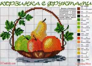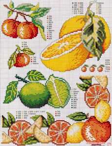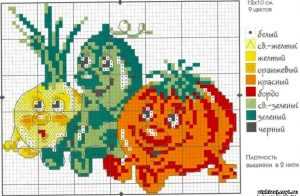 Предлагаем вам рассмотреть несколько схем с изображением овощей и фруктов, которыми можно вышить кухонный текстиль.