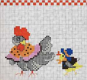 То же самое можно сделать и с кухонным фартуком, то есть вышить крестиком на его кармане симпатичную курочку с цыпленком.