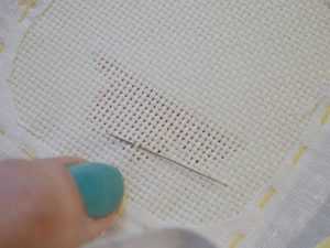 Если вы видите, что у вас скоро закончится нитка, не стоит сразу же делать узелок. Переходите на изнанку канвы и протаскивайте иглу несколько раз через вышивальную нить.