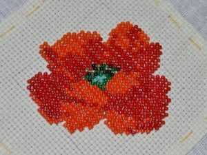 Техника вышивки будет называться полу крест. Направление выбирайте горизонтальное или же вертикальное, то есть так, как вам удобно. Располагайте бисерины максимально плотно друг к другу, чтобы не возникали просветы на полотне. Рисунок должен быть однородным. Вышивка этого красного мака выполняется с правой стороны в левую, и начиная снизу вверх. Новый ряд должен быть параллельным предыдущему. Если вы заметили, что в полосе появился просвет между бисеринами, лучше всего закрыть его сразу же, а затем продолжать вышивать остальные части алого полевого мака.