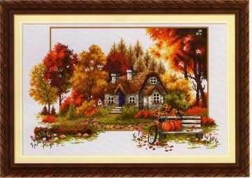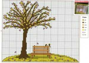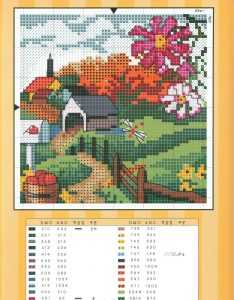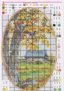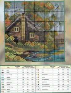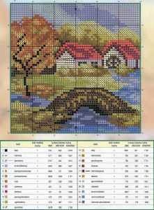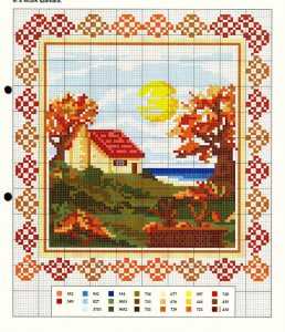 Следующие схемы крестиком будут больше рассчитаны на опытных вышивальщиц, так как на них будут изображены дома под осенними деревьями, то есть полноценные пейзажи, в которых задействовано большое количество разных оттенков мулине. Когда вы смогли определиться с выбранным изображением, в обязательном порядке проведите на канве все необходимые измерения, чтобы точно рассчитать каждую клеточку. В этом случае ваш рисунок будет ровным и вы не собьетесь, и не потеряете сюжетную линию.