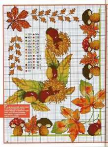 Итак, на вопрос, что можно вышить по теме «осень», найдется простой ответ. Это могут быть всевозможные листочки разной формы и цвета, овощи и фрукты, которые соответствуют этому времени года. Желуди, каштаны и многое другое, что подскажет вам ваша фантазия.