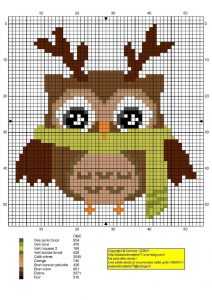 Для детских рукавиц больше всего подойдет изображение с милым олененком. Он имеет также не большой размер, всего лишь двадцать девять на тридцать восемь крестиков. Если варежки связаны из темной пряжи, тогда используйте светлые тона мулине, ну и конечно же этот принцип действует и наоборот. Картинку с оленем также можно разнообразить небольшими снежинками, которые также будут актуальны.