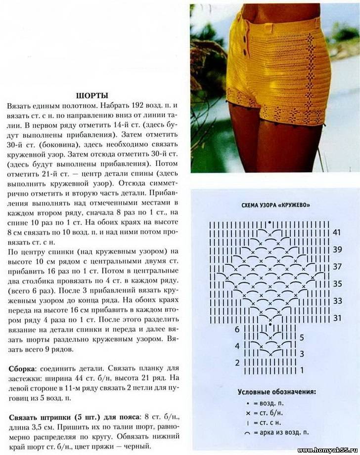 Одежда для дома: красивые вязанные женские шортики со схемами