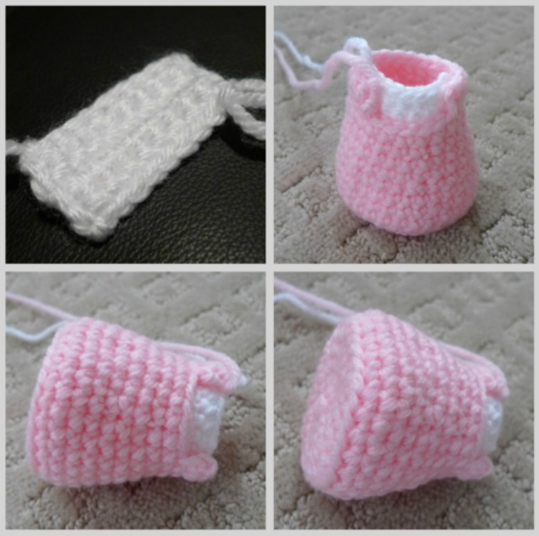 1 сс. в первые 5/6/6 п., поворот, 1 с. с н. в первые 10/12/12 п. (маркер находится после 5/6/6 п.). Продолжаем вывязывать 1 с. с н. в кажд. п. над этими п. на высоту 4/5/6 см.