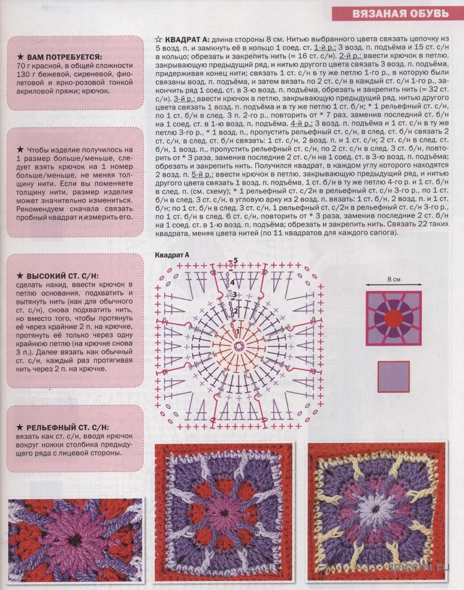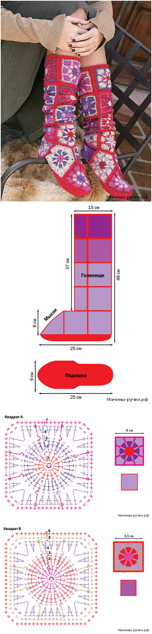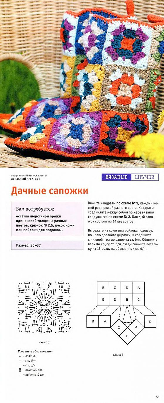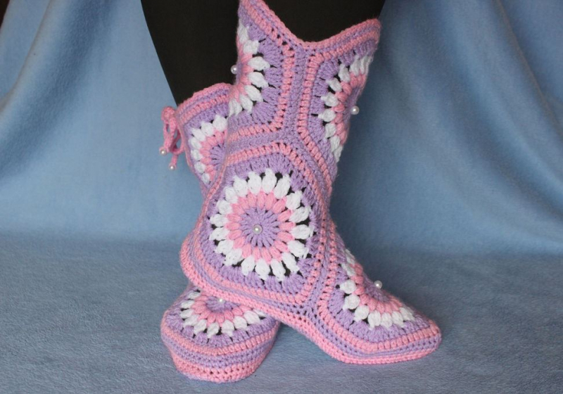 Тапочки-сапожки из мотивов: видео мастер-класс