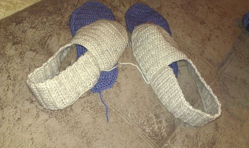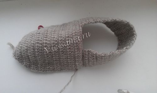 Заднюю часть подошвы там, где пяточка, провязываем 10 рядами полуст-ков с накидом.