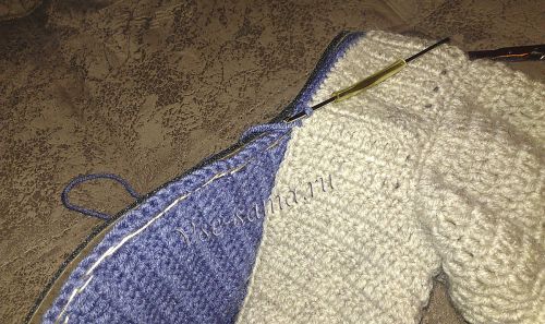 Со стороны голенища обвязываем 1 рядом СБН – по 1 ст-ку в пет. подъёма каждого ряда. Получаем 45-46 петель.