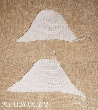 Теперь вяжем и пришиваем задник. Выполняем полоски необходимой длины и ширины. Место закругления делаем с помощью провязывания вместе нескольких столбиков
