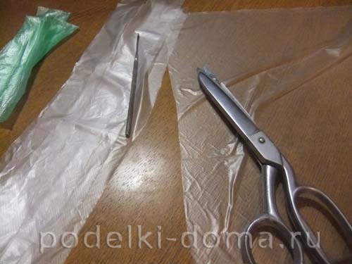 Чтобы плетение получилось ровным, полоски из пакетов нужно резать одинаковой ширины.