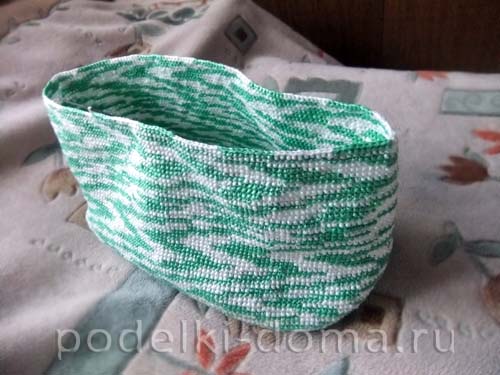 - 2р. (изн. сторона)- СБН на первых 2 петлях, * бисер, СБН*. От * до * повторяем до последних 3 петель. СБН на последних 2 петлях, ВП, поворот.