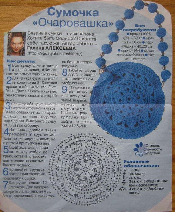 - 640 штук бисера №6 или 200г, если сумочка вся будет им украшена.