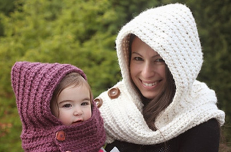 Капор крючком для мамы и малышки