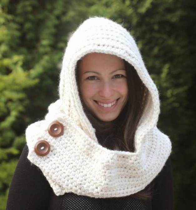 Этот капюшон с воротничком застегивается на пуговицы, поэтому идеален для холодной, ветреной осени.