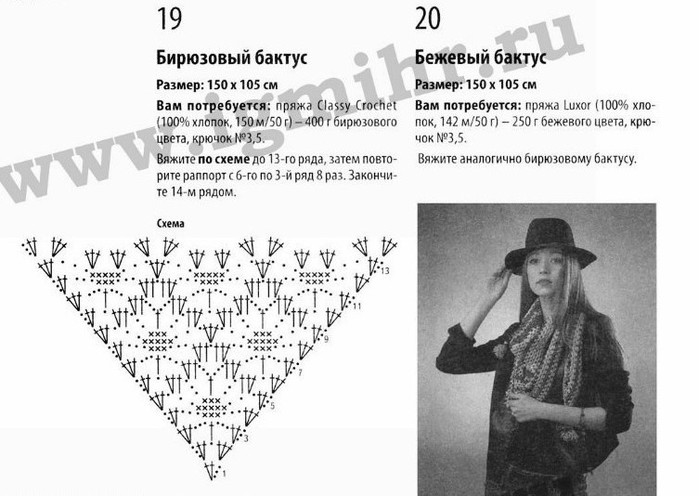 Бактус – аксессуар в виде платка, который повязывают на шее. Пришёл он к нам из скандинавских стран, но изначально их носили зажиточные жители Норвегии и Дании. Согласно легенде, своё название бактус получил благодаря главному герою норвежского мультика с таким же именем, у которого на шее был повязан этот платок. Рассмотрим, как вязать бактус крючком схема и описание.