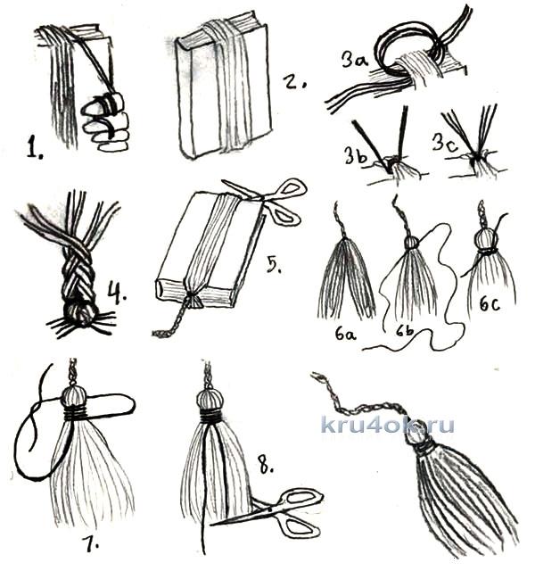 - немного больше половины мотка отделочной пряжи (она должна быть пышной и нарядной)