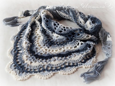 Этот платок по стилю и окрасу можно носить в любое прохладное время года. Узор красивый и его просто вязать.