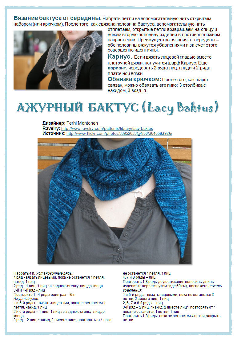 Преимущество этого платка в том, что он состоит из гипоаллергенной пряжи. Его можно вязать даже для детей. Помимо этого, бактус отлично впитывает влагу и пропускает воздух.